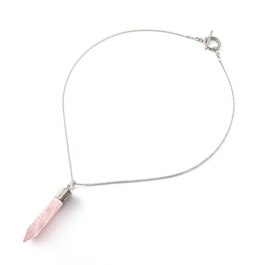 Naszyjnik 44 cm z Kwarcem Różowym – Srebro 925 pokryte platyną