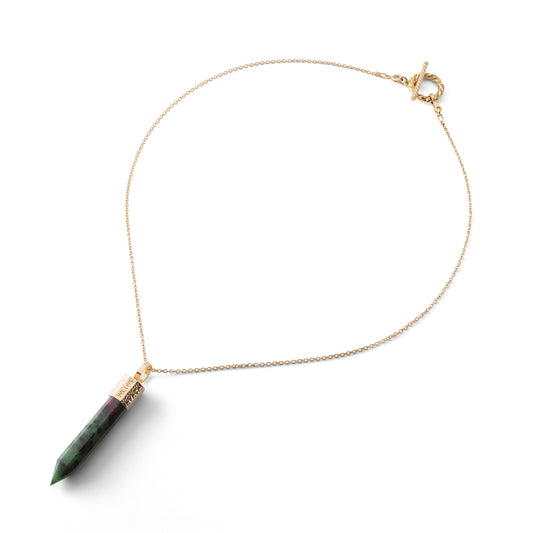 Naszyjnik 44 cm z Zoizytem z Rubinem – Srebro 925 pozłacane