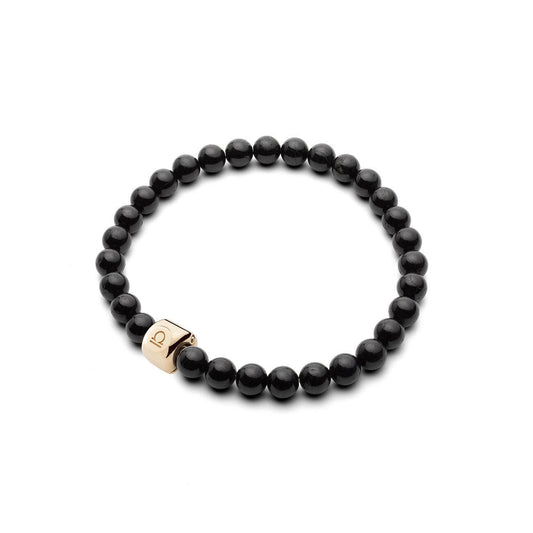 String bracelet with stone - Smooth (shiny) Tourmaline 4mm - Black
