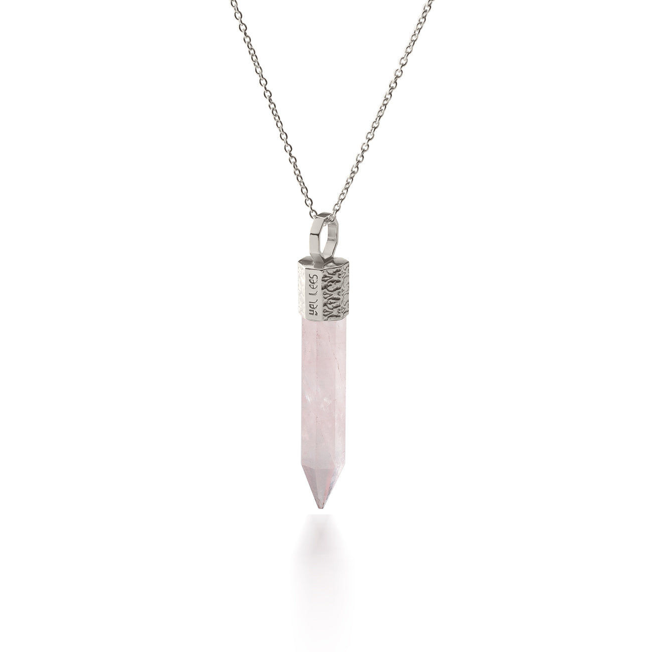 Każdy kwarc różowy TERRA 44 przechodzi proces starannej selekcji i ręcznego szlifowania, który trwa od 60 do 90 minut. Precyzyjne cięcie i polerowanie nadają mu elegancką formę geometrycznego talizmanu: