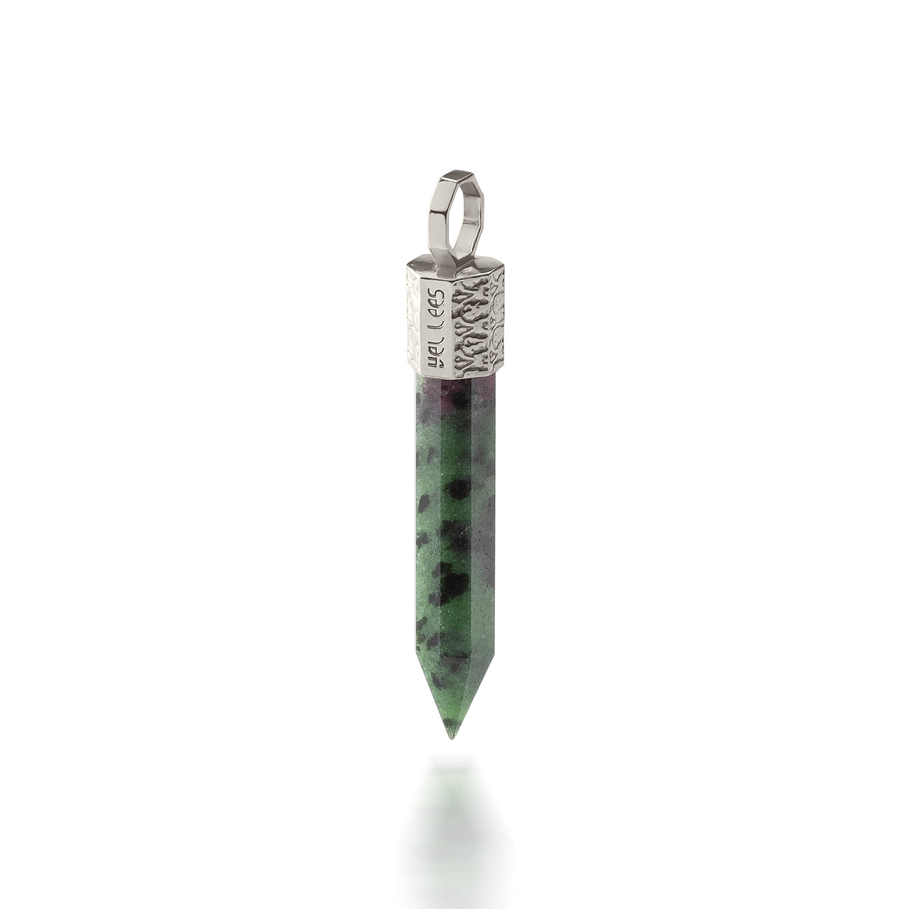 Naszyjnik z zoizytu z rubinem 44 mm ze srebra 925 pokrytego platyną z kolekcji TERRA 44 to kamień przemiany, pasji i odwagi. Łączy energię rubinu i zoizytu, tworząc harmonijny balans między spokojem a siłą działania. Idealny dla tych, którzy są w procesie wewnętrznego wzrostu i chcą żyć z sercem pełnym odwagi, miłości i świadomości.