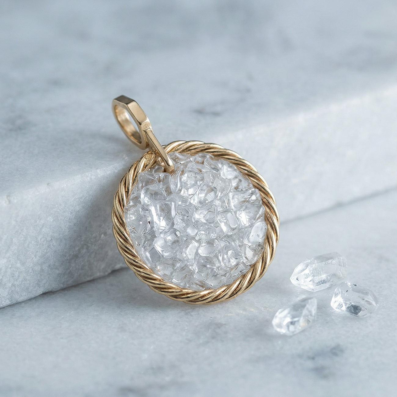 W tej konstrukcji Kryształ Górski nie jest pojedynczym kamieniem — staje się częścią większej całości: jak pieczęć, która przypomina o tym, co chcesz utrzymać w osi na co dzień.