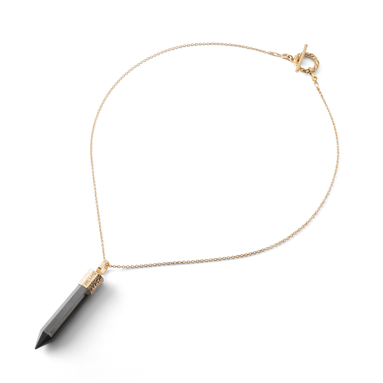 Necklace with black tourmaline 44 mm gold-plated 925 silver from the collection TERRA 44 It's a talisman of protection, stability, and grounding. Ideal for those sensitive to the energies of their surroundings, seeking peace, balance, and a safe center in their daily lives.