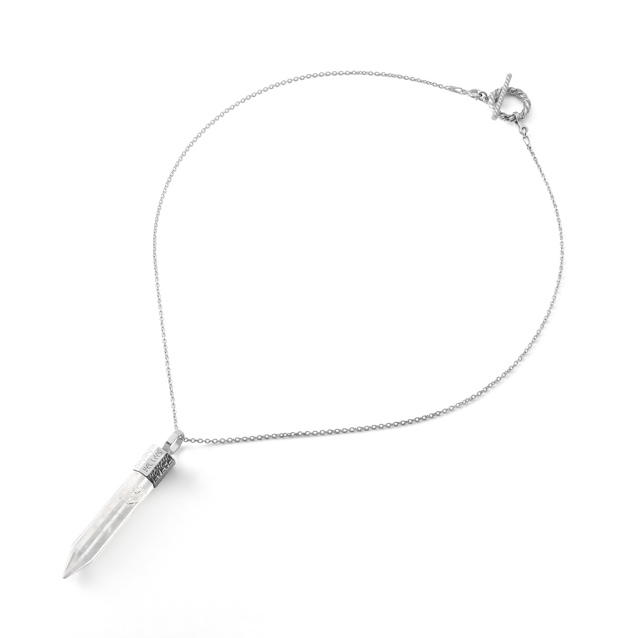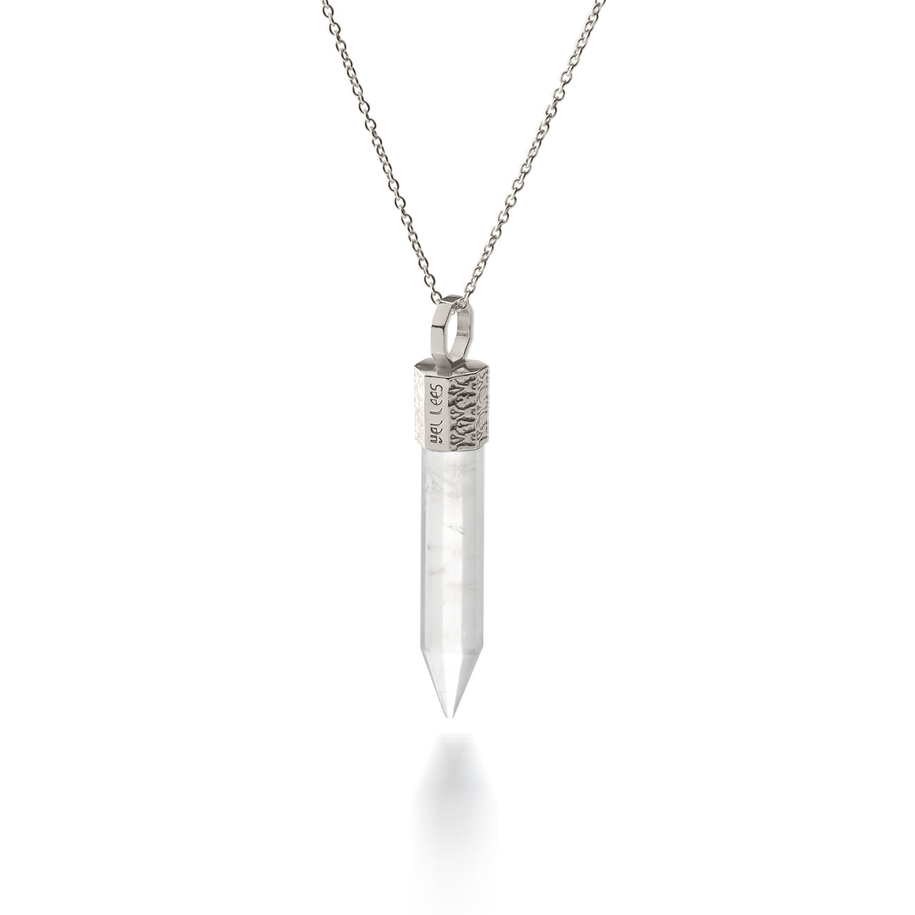 Necklace with rock crystal 44 mm in 925 silver plated with platinum from the collection TERRA 44 It's a talisman of purity, balance, and universal energy. It strengthens intentions, cleanses the aura, and harmonizes the surrounding space. Perfect for those seeking inner clarity, spiritual guidance, and harmony with the world.