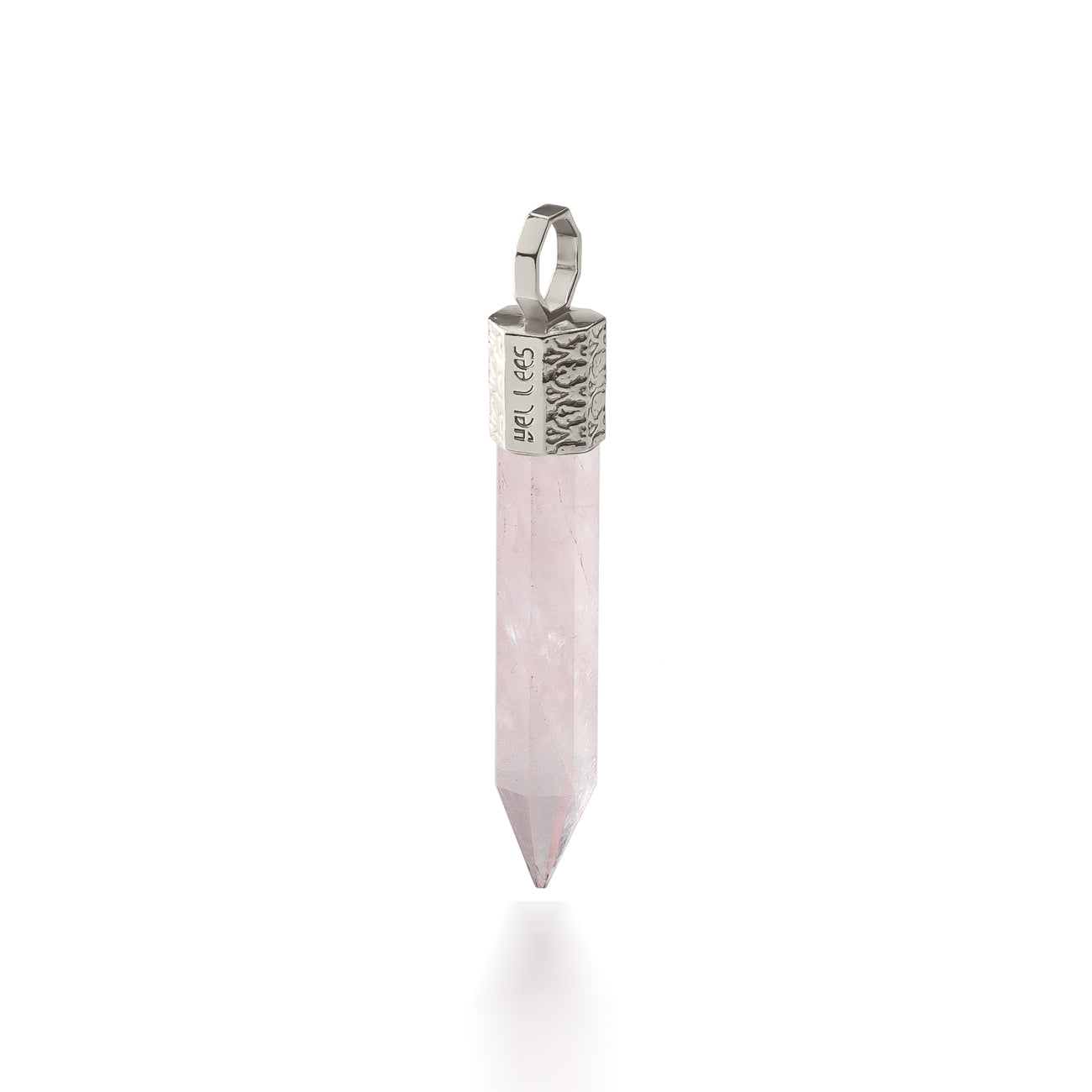Zawieszka z kwarcem różowym 44 mm ze srebra 925 pokrytego platyną z kolekcji TERRA 44 to talizman serca i miłości. Łączy w sobie delikatność, empatię i duchową równowagę. Idealny dla osób, które pragną żyć w zgodzie z uczuciami, przyciągać harmonię i pielęgnować ciepło relacji.